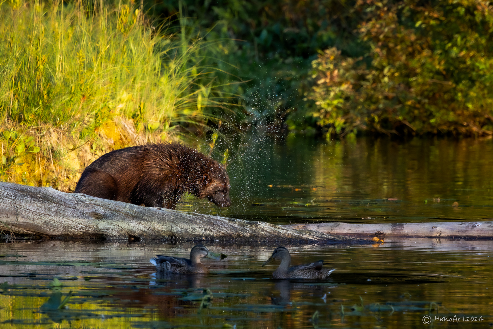 Tästähän alkaa jo tulla tapa. Kahtena peräkkäisenä viikonloppuna ahmakojulla, tällä kertaa siis nuorimman teinin kanssa. Muutaman tunnin odottelun jälkeen teini saikin ensinäkymänsä ahmaan. Noin klo 19 aikoihin ensimmäinen yksilö ilmaantui rinteen suunnasta ja ahkeroi paikalla kaikkineen noin 20 minuuttia. Kävi lopuksi vielä osittaisella pesulla lammessa ennen kuin poistui saman rinteen suuntaan, mistä tulikin.